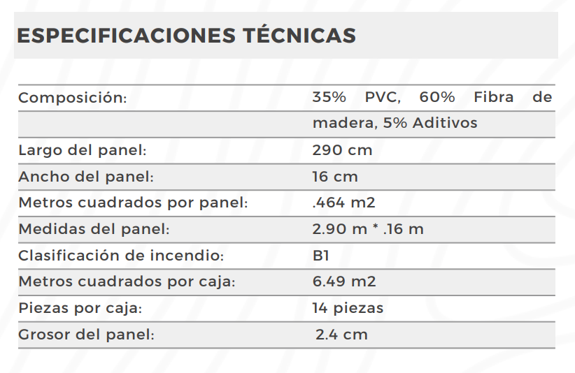 1 caja con 14 paneles de 2.90x0.17 metros.